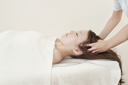 脳疲労改善コースであるドライヘッドスパと頭皮針の組み合わせ
