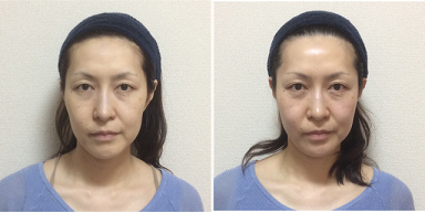 ほうれい線が消え、二重がくっきり、まゆ毛の位置が上がって、顔全体が引き上がりました。
